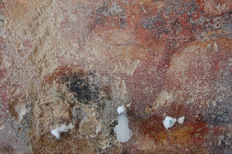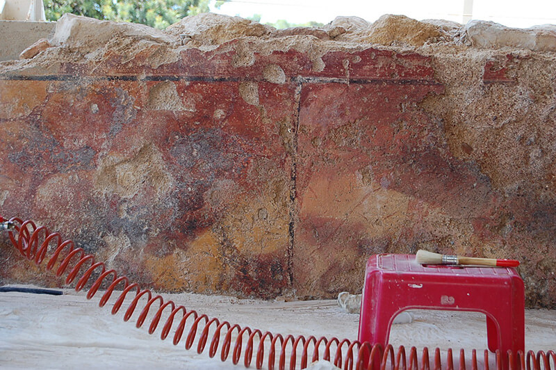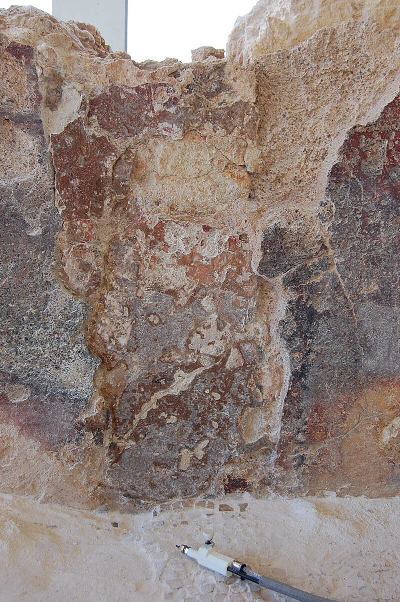 El trabajo combinó observación minuciosa, limpieza controlada y aplicación de materiales compatibles con la cal, con el objetivo de preservar la lectura arqueológica del espacio sin alterar su autenticidad.